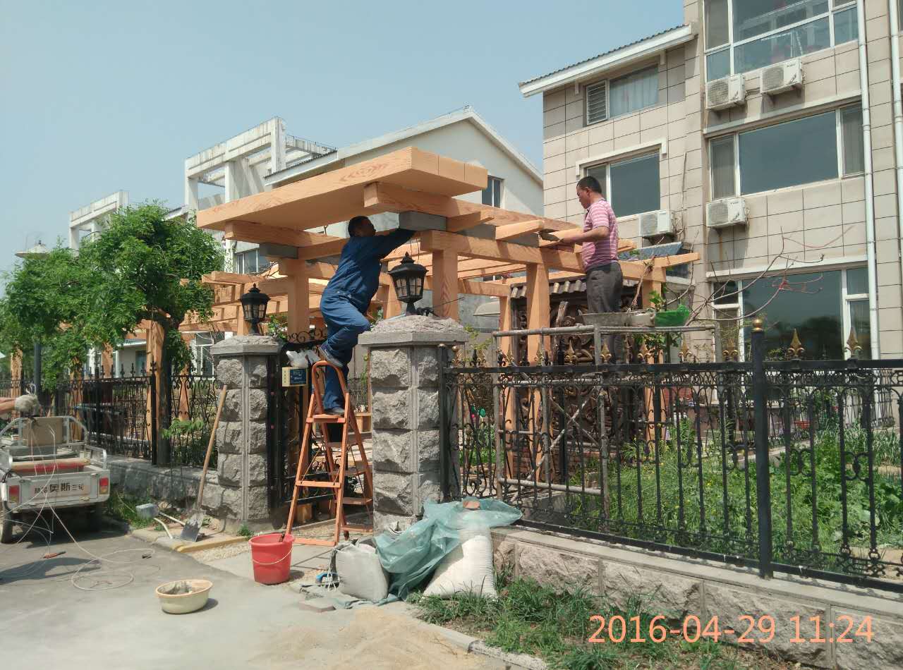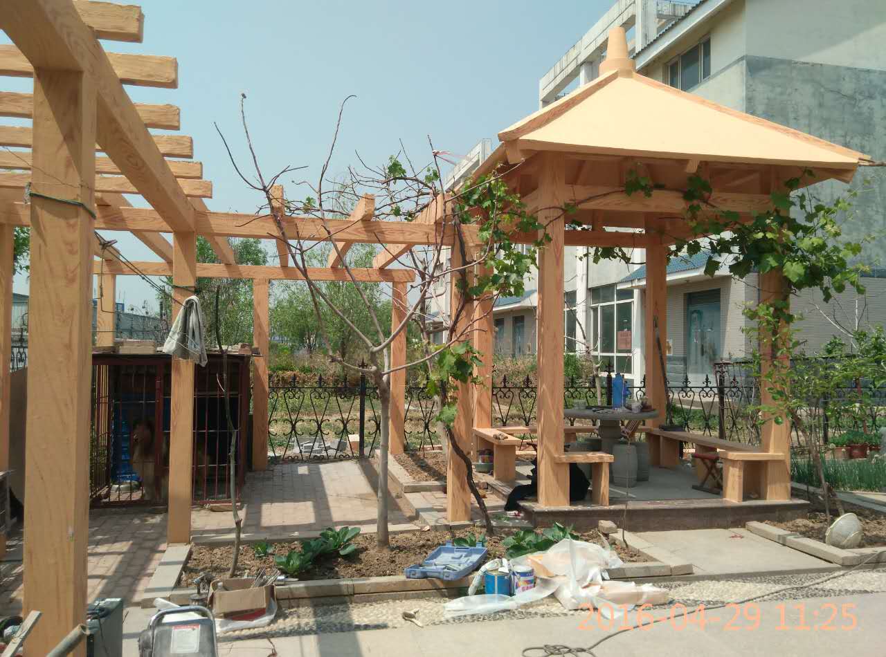 施工內(nèi)容:水泥仿木長(zhǎng)廊、藤架、水泥仿木涼亭,水泥浮雕。