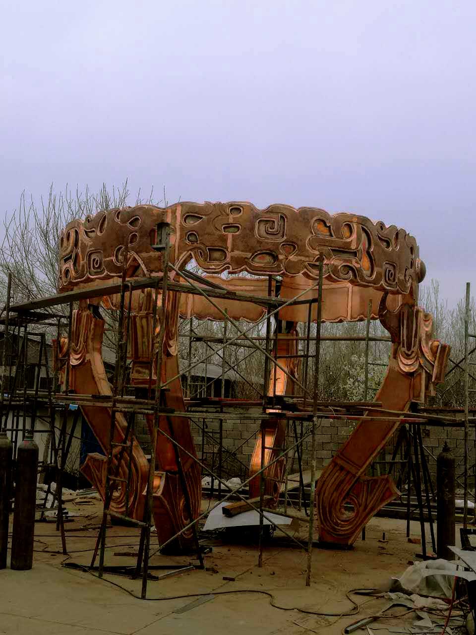簡(jiǎn)要技術(shù)要求:鍛銅渾天儀景觀小品設(shè)計(jì)、制作與安裝,采用厚度1.5-2.0mm紫銅鍛造。