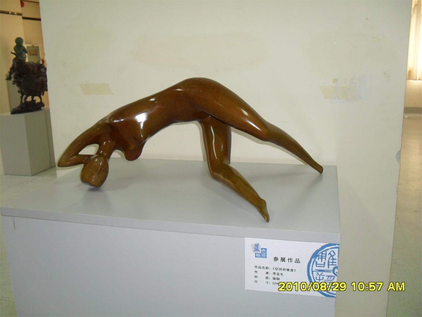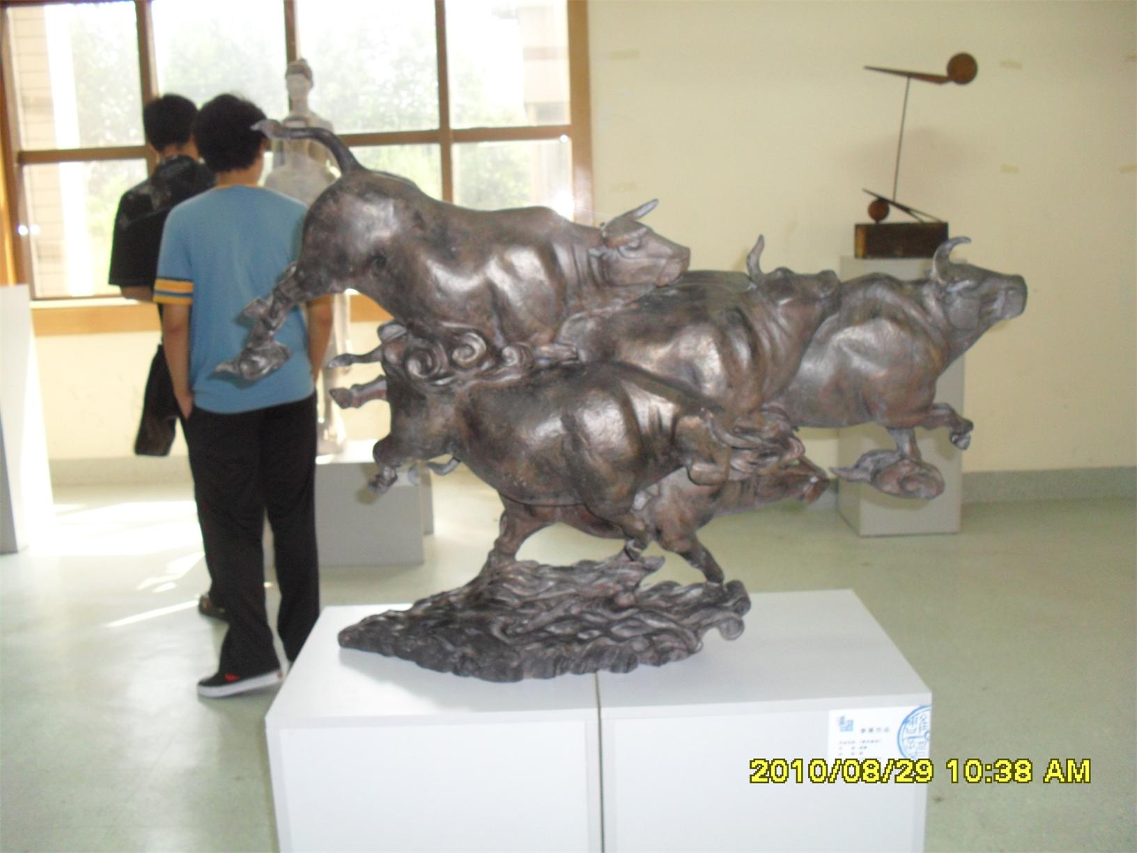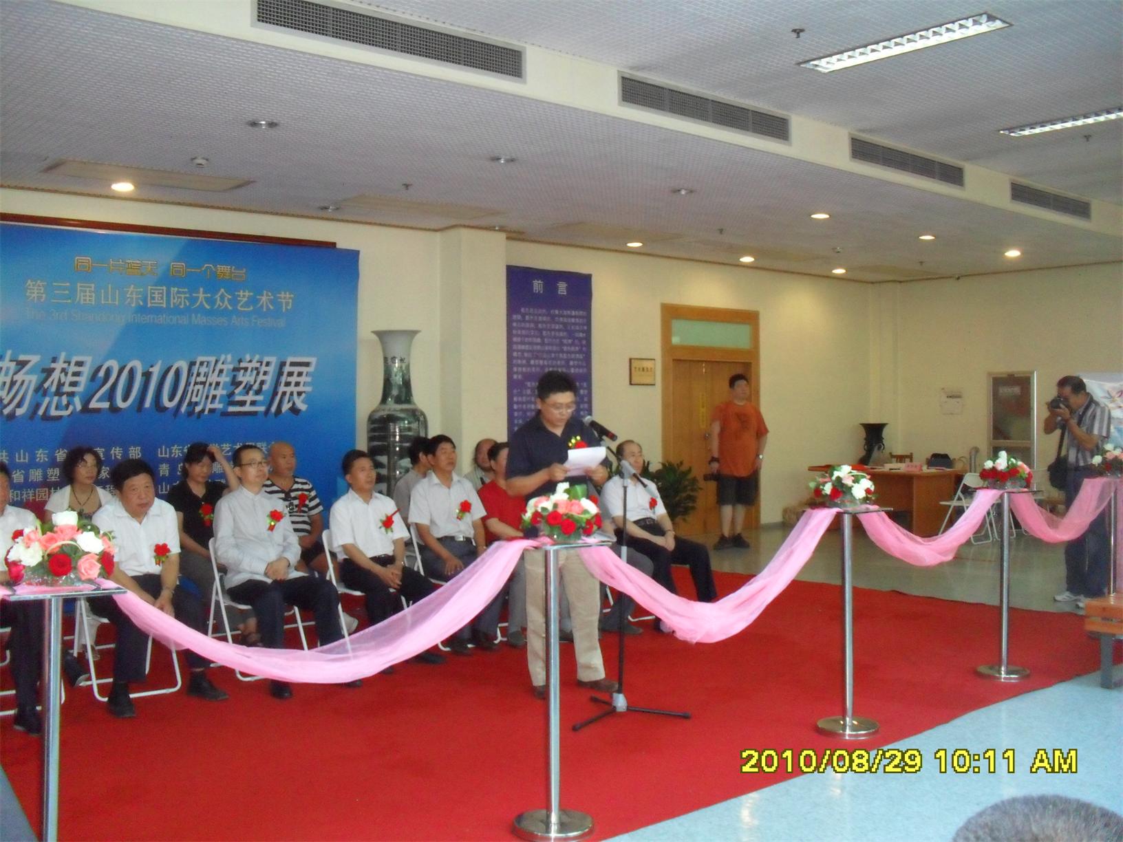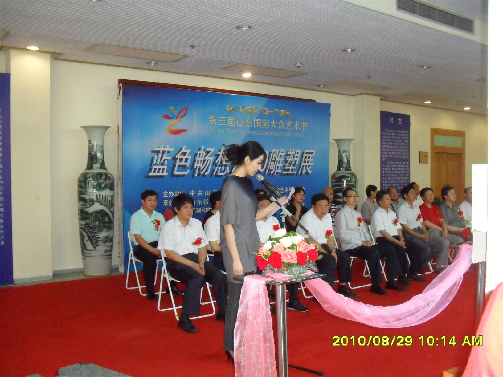 藍(lán)色暢想2010雕塑,2010年8月29日,由中共山東省委宣傳部、山東省文學(xué)藝術(shù)界聯(lián)合會(huì)主辦,山東省雕塑藝術(shù)家協(xié)會(huì)、青島雕塑家協(xié)會(huì)承辦的第三屆山東國(guó)際大眾藝術(shù)節(jié)--藍(lán)色暢想2010雕塑展在山東省圖書館隆重開(kāi)幕。 "藍(lán)色暢想2010雕塑展"吸引了省內(nèi)外大批中青年雕塑家的參與,展覽共收到101位雕塑藝術(shù)家的126件入圍作品。其中省內(nèi)中青年雕塑藝術(shù)家占絕大多數(shù),圍繞"藍(lán)色"主題,堅(jiān)持創(chuàng)造、創(chuàng)新理念,創(chuàng)作了大批優(yōu)秀的雕塑藝術(shù)作品,語(yǔ)言生動(dòng),內(nèi)容多樣,借助不同材質(zhì)和多元化的藝術(shù)風(fēng)格,對(duì)藍(lán)色精神進(jìn)行了深入的闡釋。李友生的《海風(fēng)倩影》、王未的《藍(lán)色暢想》、譚信國(guó)的《蘋果系列》等作品,均對(duì)雕塑藝術(shù)內(nèi)涵進(jìn)行了深入的探索。